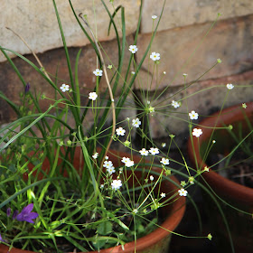 Åter till den lilla gången, vid fötterna de här små blå som heter.... ??? Någon som vet? Samsas med en frösådd liten näva.